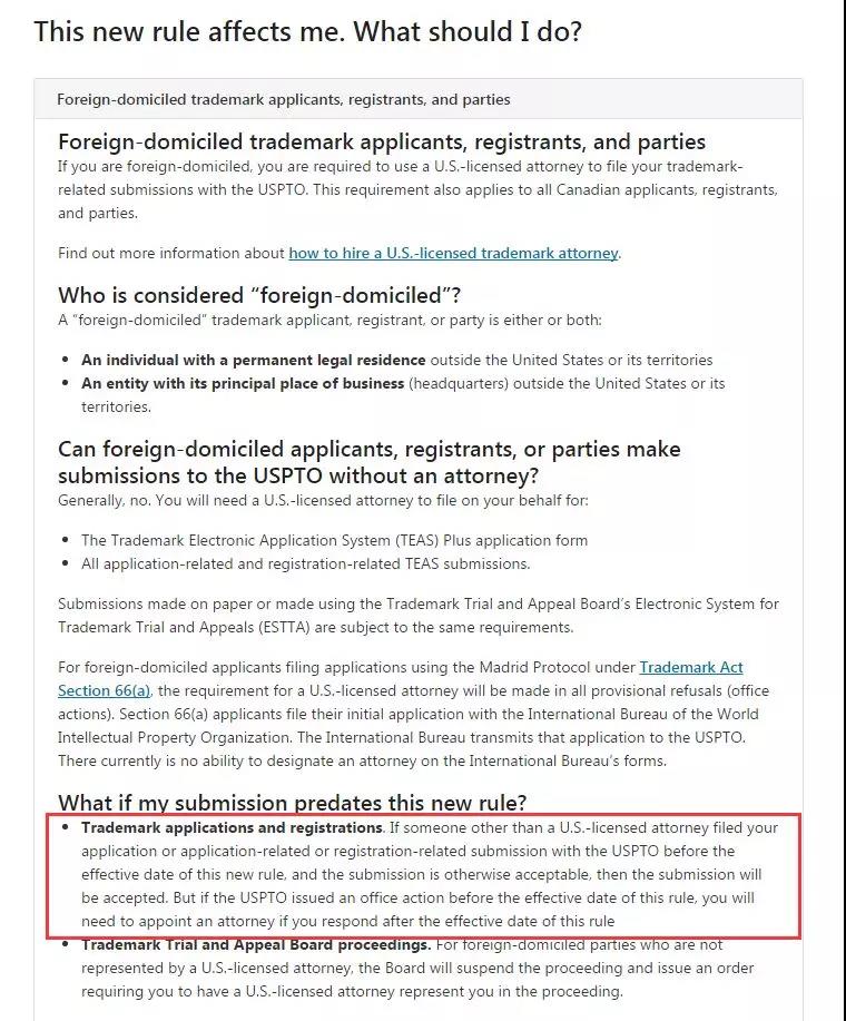 2019年8月3日前遞交的美國(guó)商標(biāo)申請(qǐng),如果不是由美 國(guó)執(zhí)業(yè)律師代理的,仍能夠提交。