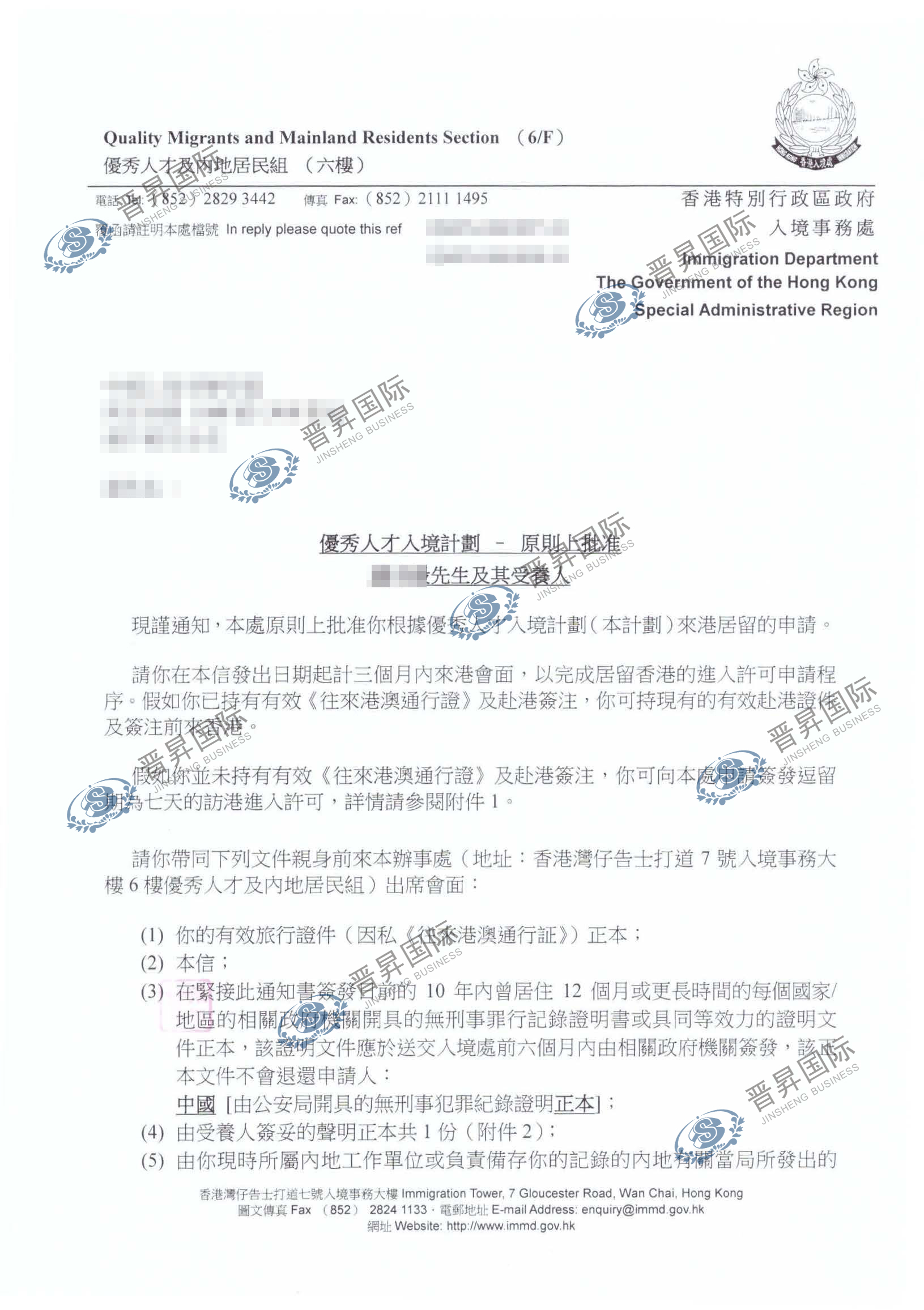 因此,晉昇國(guó)際的移居部全程指導(dǎo)Z先生做好充分的工作證明文件,為其申請(qǐng)表中清晰地闡述赴港計(jì)劃和目的,全面展現(xiàn)Z先生的創(chuàng)意產(chǎn)業(yè)專(zhuān)才優(yōu)勢(shì)。因應(yīng)Z先生的初衷,我們也為其補(bǔ)充整理其子女的相關(guān)申請(qǐng)資料,增加了受養(yǎng)人,順利地向中國(guó)香港入境處遞交完美的申請(qǐng)材料。在整個(gè)申請(qǐng)過(guò)程中,Z先生無(wú)需補(bǔ)充任何資料和文件,過(guò)程相當(dāng)順利。2019年6月,Z先生就收到了中國(guó)香港入境處的原則性批準(zhǔn)信。從遞交申請(qǐng)到獲批,全程僅歷時(shí)8個(gè)月!