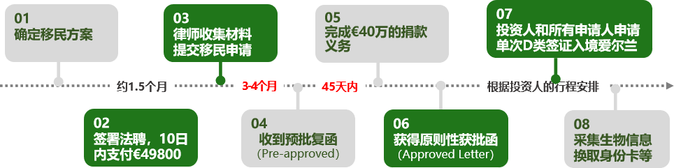 個(gè)人捐贈(zèng)50萬歐元至愛爾蘭公共設(shè)施(比如教育、藝術(shù)、公益項(xiàng)目等)。如果團(tuán)體捐贈(zèng),捐款的金額可以降低至40萬歐元。捐款方式雖然無法獲得回報(bào),但是它的優(yōu)勢(shì)在于獲批速度最快,而且所要求的材料也相當(dāng)簡(jiǎn)單。