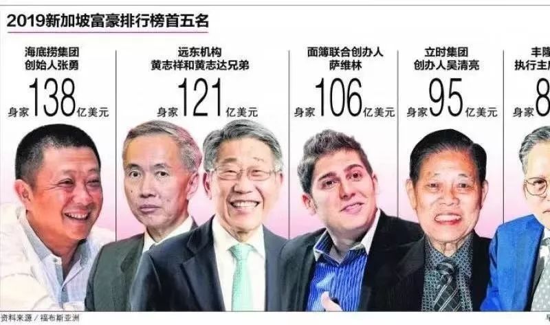《福布斯亞洲》指出,盡管新加坡政府預(yù)測(cè)今年經(jīng)濟(jì)與去年持平,過(guò)去一年的新加坡股市也下滑了3.5%,新加坡50大富豪的整體財(cái)富仍是上升了12%至1300億美元,“大部分是因?yàn)閺堄陆衲耆氚瘛?rdquo;