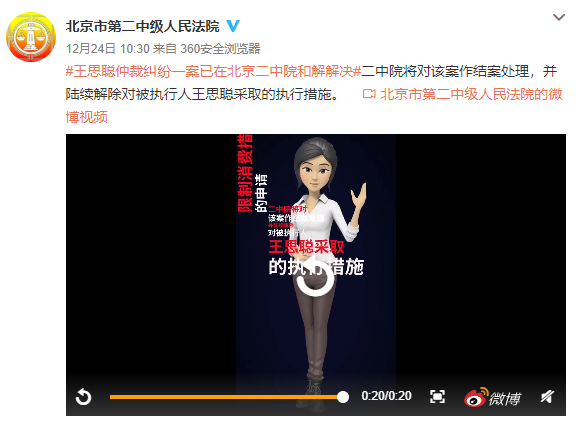 12月24日,王思聰涉案的三個服務(wù)合同糾紛案件撤回,上海市靜安區(qū)人民法院對其發(fā)布的三個限制消費(fèi)令也已撤銷。王思聰已經(jīng)在12月2日和發(fā)起仲裁的嘉興璟字悌為股權(quán)投資基金合伙企業(yè)達(dá)成和解協(xié)議,王思聰履行了和解協(xié)議約定的第一筆款項(xiàng)5000萬元。
