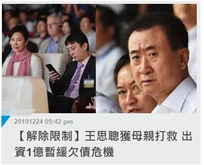 據(jù)說上述還債款項(xiàng)應(yīng)該是由王思聰自己想辦法籌措的,“萬達(dá)集團(tuán)與此沒有任何關(guān)系。”此外,也有港媒報道,稱是王思聰?shù)膵寢尶床贿^眼老公沒出手,自己拿了一億出來給兒子還債。但截至目前為止,王思聰還有1.1億元需要支付給嘉興璟字悌為,但這筆剩余款項(xiàng)支付期限尚未屆滿。