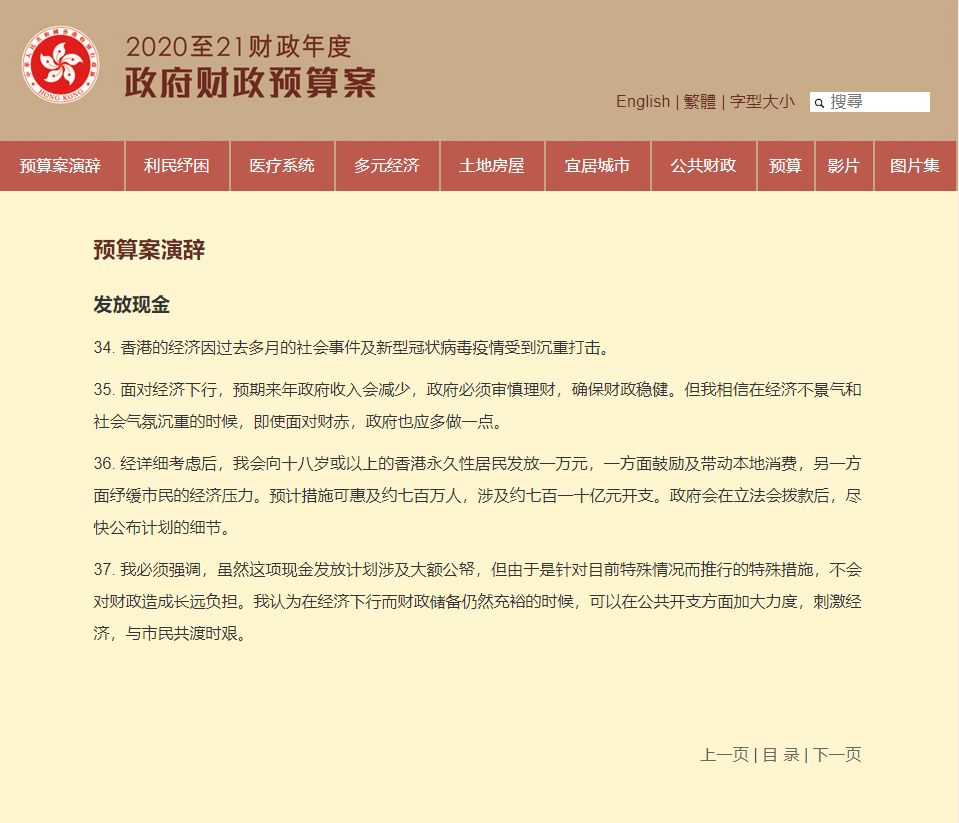 一次性寬減2019/20課稅年度百分之百的利得稅、薪俸稅及個人入息課稅,每宗個案以HKD20,000元為上限。具體細則如下: