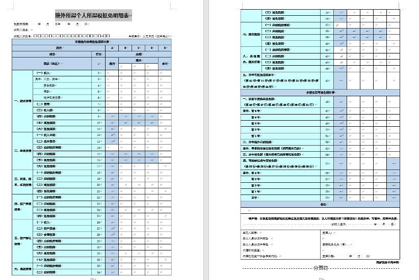 適用于居民個人納稅年度內(nèi)取得境外所得的情況,包含:境外股息紅利所得、境外財產(chǎn)轉(zhuǎn)讓所得、股權(quán)激勵等項目等,涉及到目前所有收入類型,較為復(fù)雜。