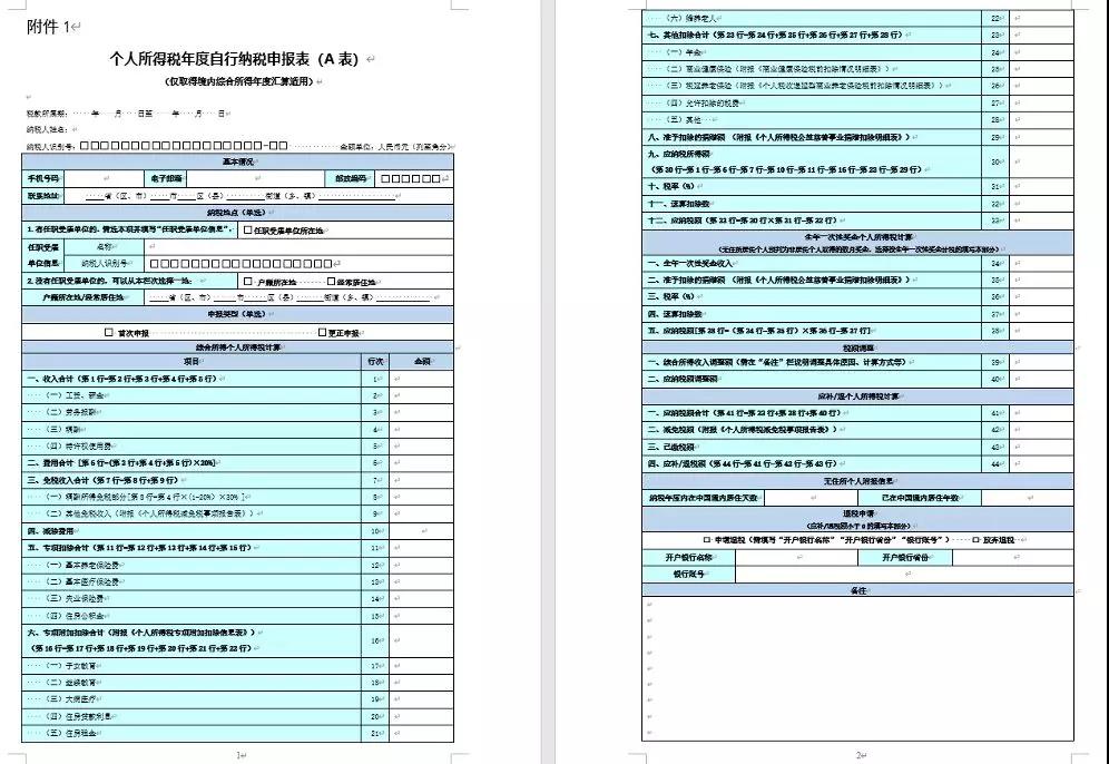 (1)《個人所得稅年度自行納稅申報表(A表)》