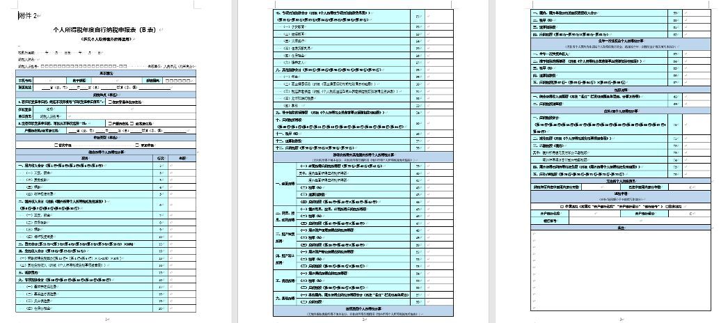 (4)《個人所得稅年度自行納稅申報表(B表)》