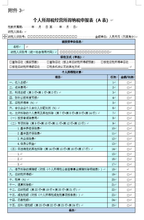 (5)《個人所得稅經(jīng)營所得納稅申報表(A表)》