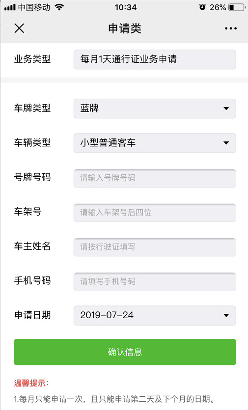 申請臨時通行證的方法只能一個月申請一次,且只能申請第二天及下個月的日期。這方法并不推薦長期在深圳行走的車輛。